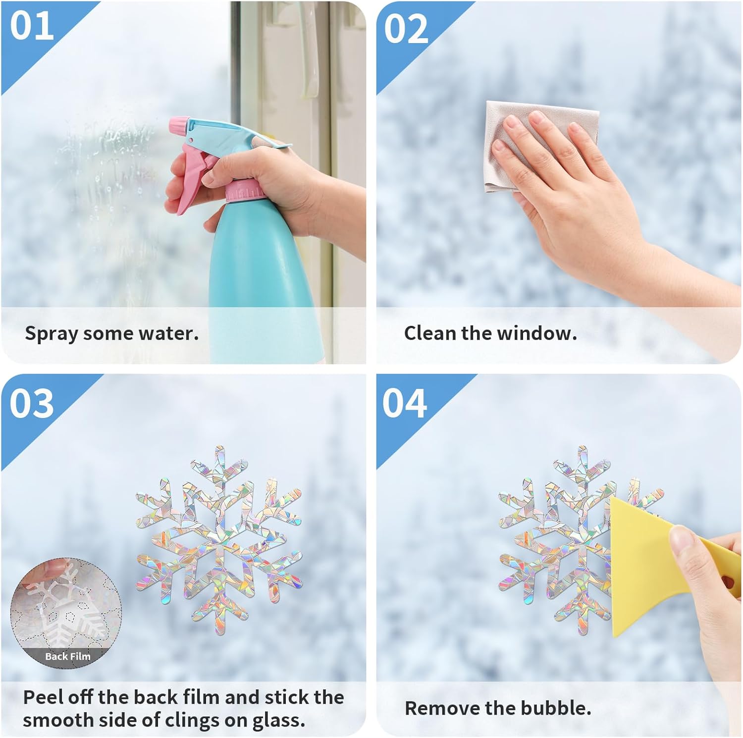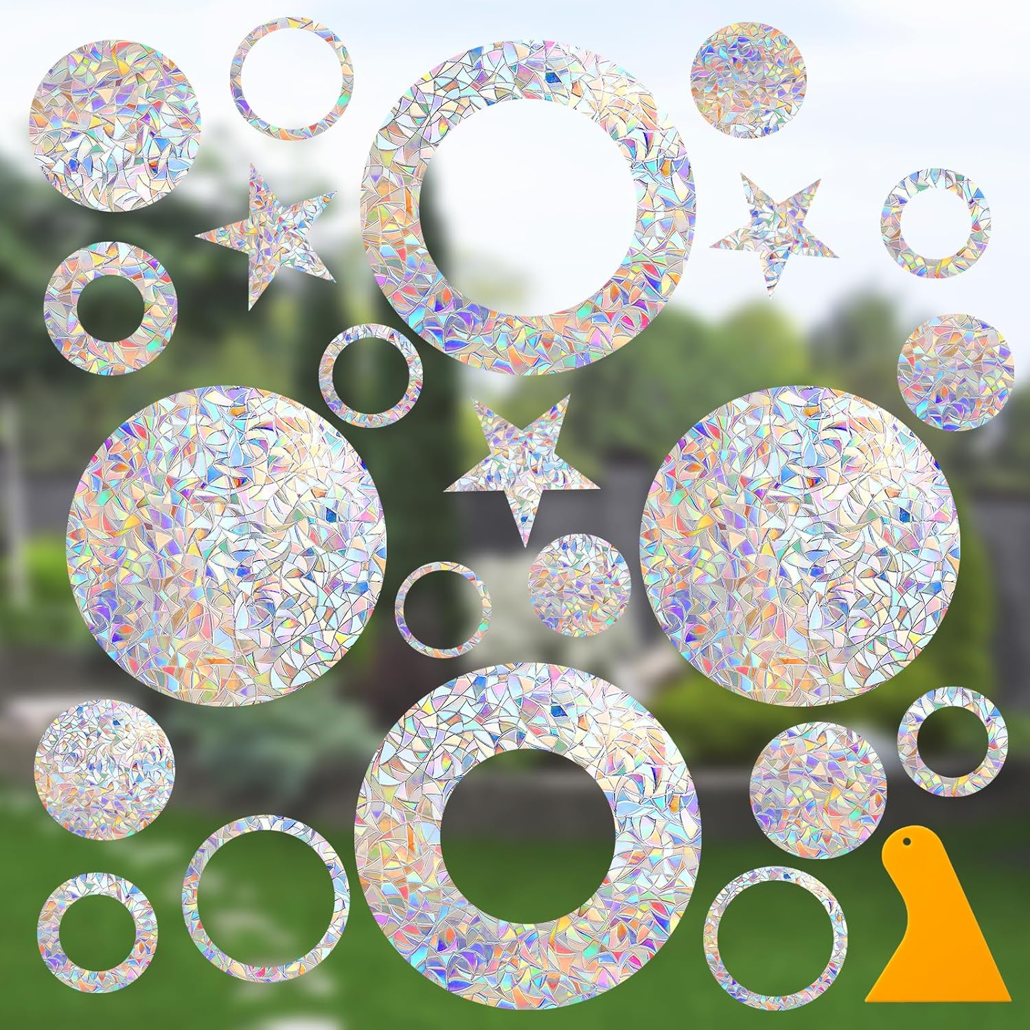If you put these window stickers on windows from outside, they will create a vivid visual rainbow effect that birds will know it is better not to be there.