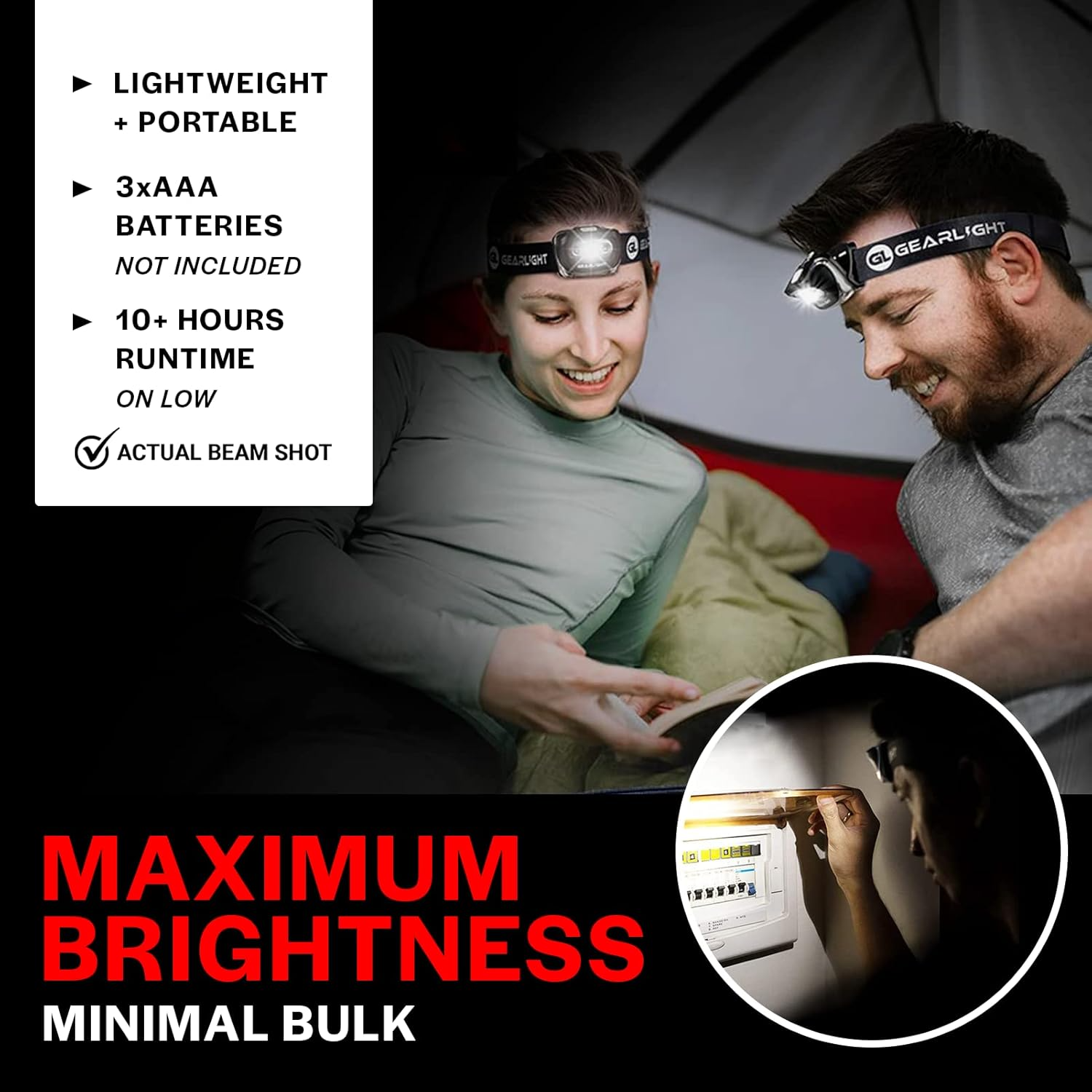 - VALUE PACK - Each order includes 2 S500 Gear Light headlamps (AAA batteries not included). Keep one in your car and another at home for convenience. Like a head light for your forehead.