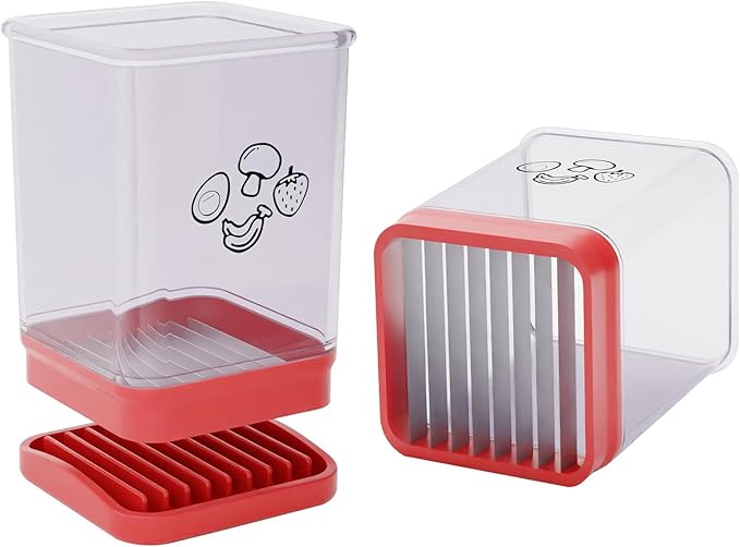 - Multifunction Kitchen Tool: The slicer can work well with most soft fruits and vegetables, like strawberries, bananas, grapes, mangoes, kiwi, mushroom or boiled eggs and more (But not for those hard vegetables like potato's, etc..). Great for making fruit salad.