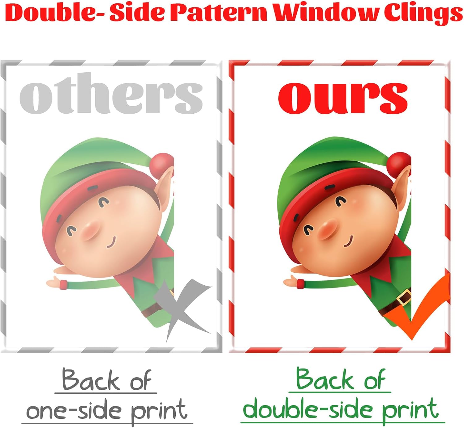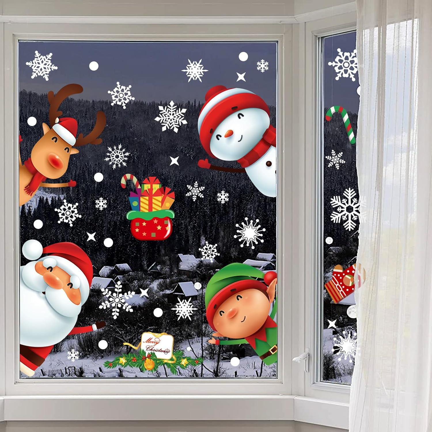 ● Our Christmas window clings use double-sided design so that you can see them indoors and outdoors.