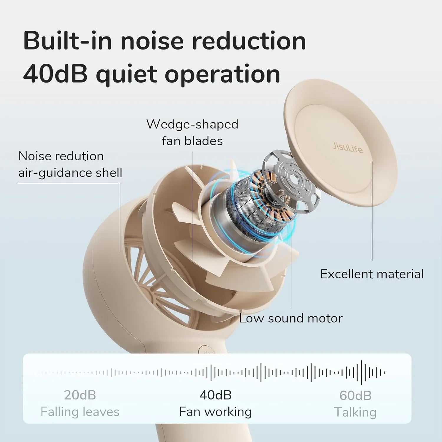 - Handheld/Desktop Fan: JISULIFE Mini Handheld Fan comes with a lanyard and an anti-slip mat at the bottom, you can hang it around your hands as a personal fan when outdoors and used it as a small desk fan on a flat table. Suitable as a gift for women